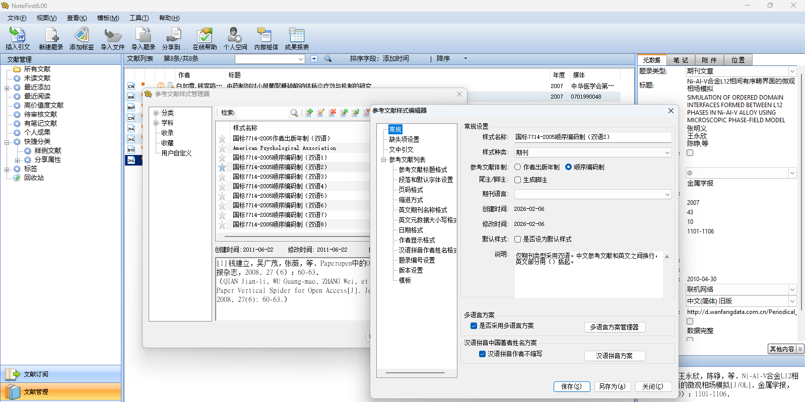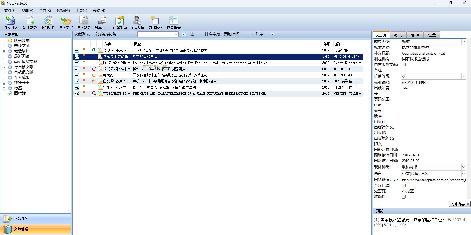 notefirst 文献管理软件是一款文献管理、论文写作及科研协作工具。主要功能包括文献收集管理、论文写作帮助、科研协作交流以及学术信息搜索。notefirst 基于互联网, 可以多台电脑数据可以自动同步,并且全面支持国家标准,并满足sci、ei 等收录中文论文要求双语参考文献的格式要求。