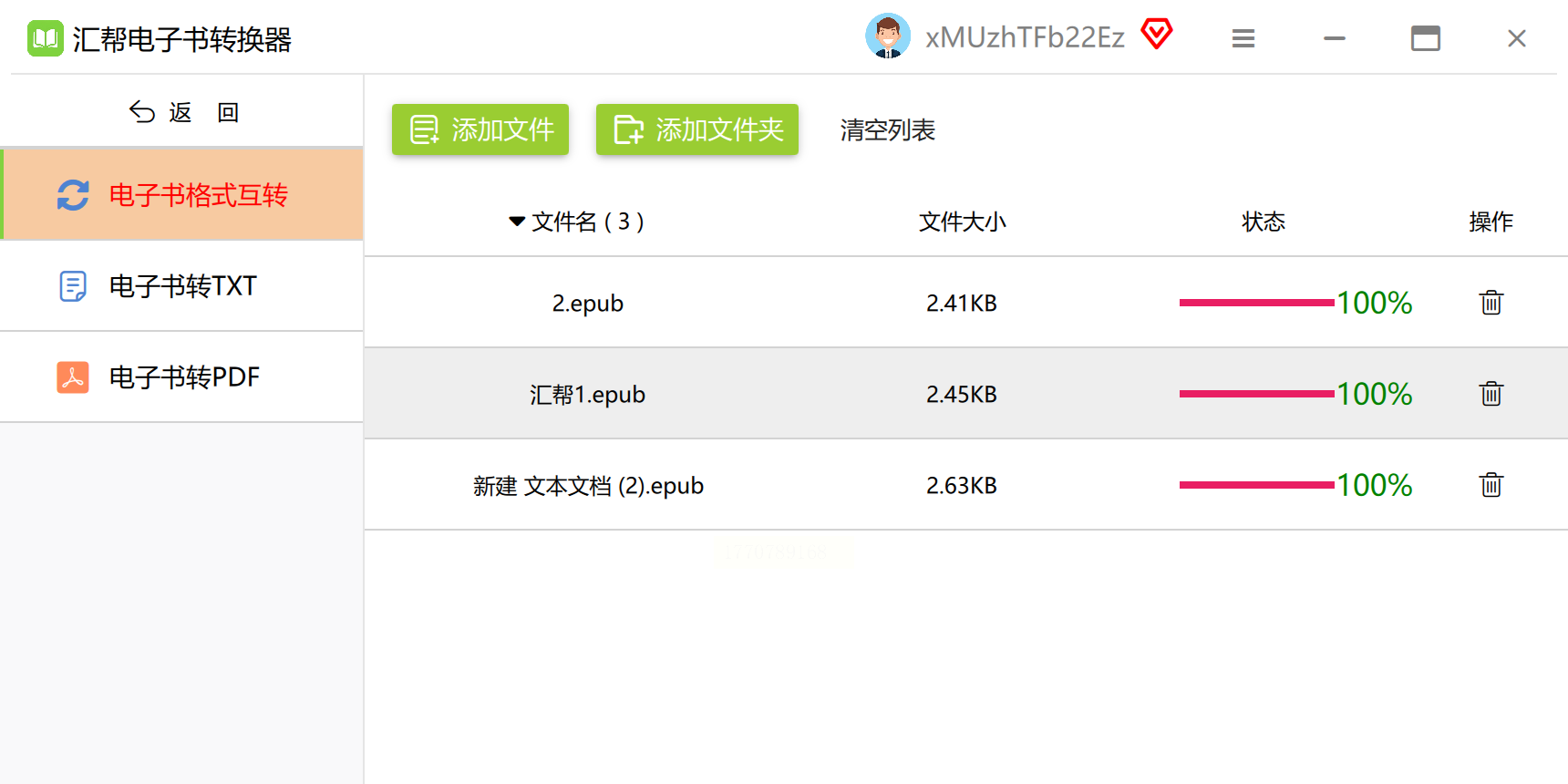 汇帮电子书转换器支持将azw3、mobi、pdf、txt、word、epub等格式的电子书相互转换,文件在转换后依旧可以保持原文件的排版,处理速度快,质量好,一键完成电子书格式转换需求。软件支持市场主流电子书格式间的无缝转换,不再为书籍格式限制而烦恼,方便您快速获取阅读所需。