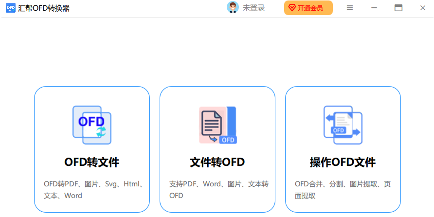 汇帮ofd转换器是一款支持批量ofd文件转换格式的工具,并且能提供其他格式转ofd、ofd转其他格式的功能。软件还支持ofd合并、分割、ofd图片提取、页面提取等功能。