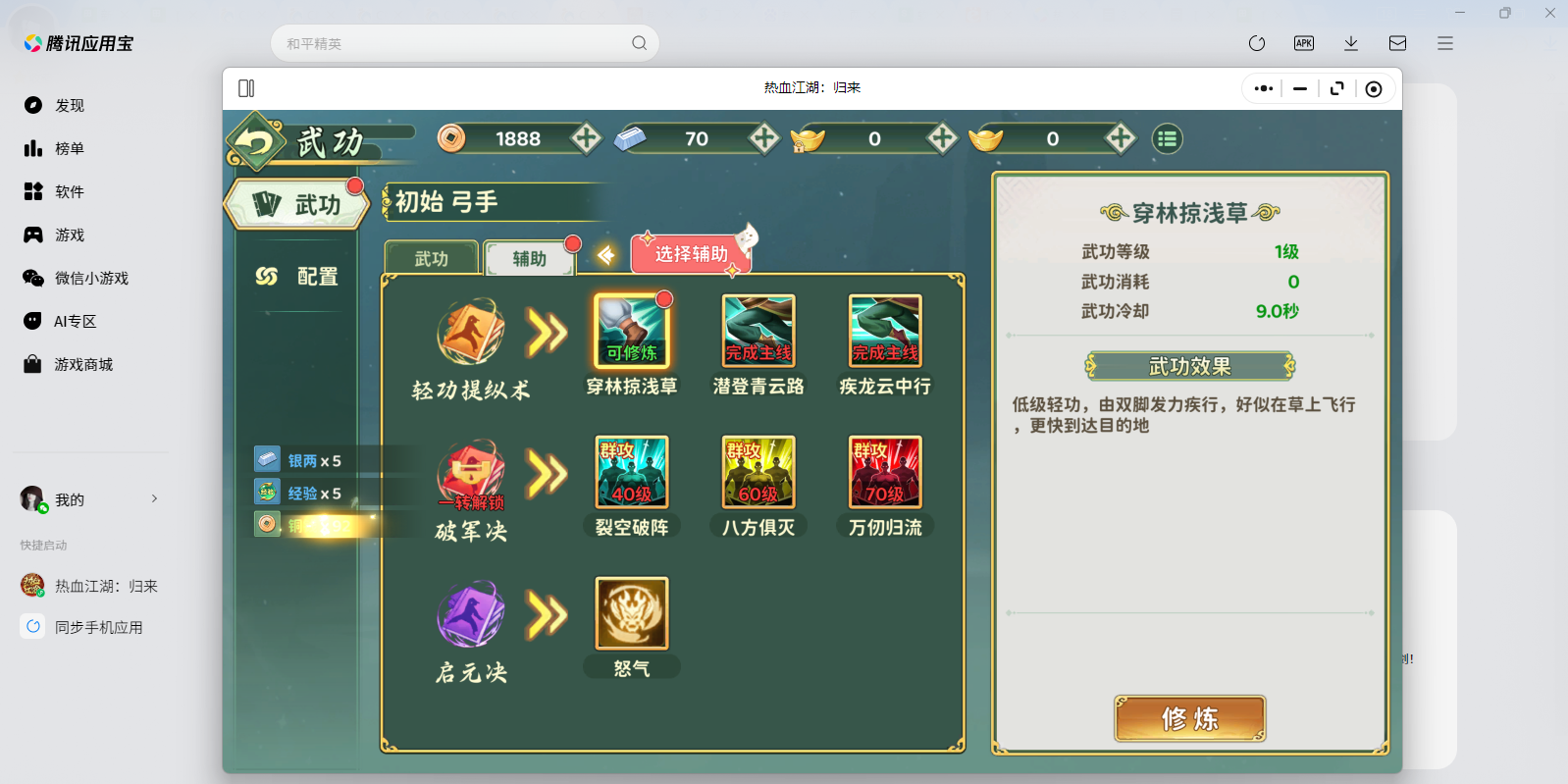 完成主线任务后解锁,角色可习得“疾龙云中行”轻功,御风飞行,自由穿梭于江湖各地,饱览江湖美景。