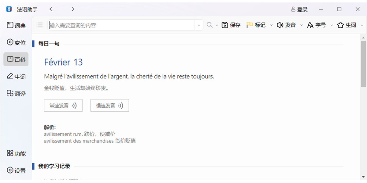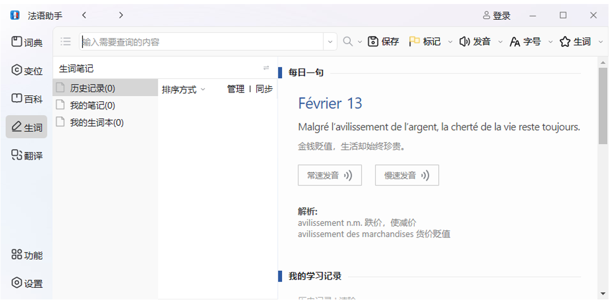 法语助手mac版是一套针对中国法语学习者特别设计的教育软件。软件以法语词典为基础,包含词典、动词变位查询、例句翻译查询,真人朗读学习参考交流等功能,是法语学习的必备软件。最新版更引入了gpt翻译、ai写作、批改纠错等强大功能,全方面改变你的法语学习。