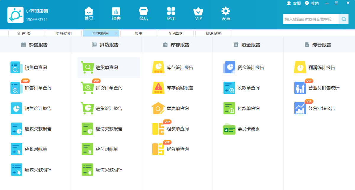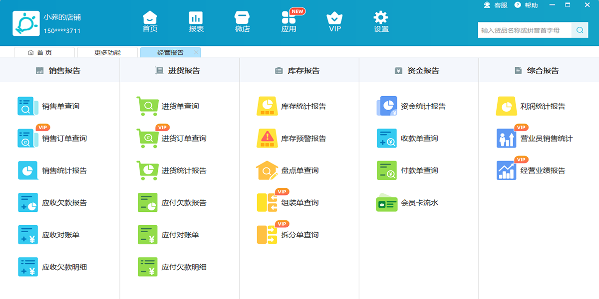 一个软件同时管理多个店铺,可根据店铺数开通不同级别vip。