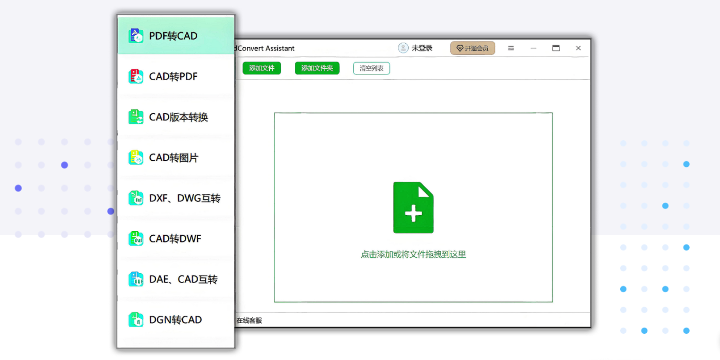 cad转换助手(cad convert assistant)是一款cad文件转换处理软件, 操作简便,软件界面简洁明了,可一键批量一键操作;cad版本转换,cad转pdf,cad转图片,pdf转cad,图片转cad,dwg dxf互转,cad dwf互转。