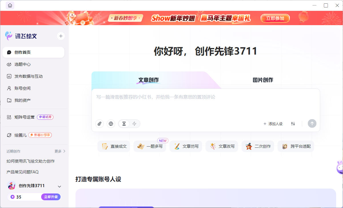 选题、配图、成文,一站式创作让内容运营更高效。基于讯飞星火大模型,依托先进技术,重塑内容创作「选题-配图-成文-发布」全流程,达成优质内容的快速产出,为创作者高效赋能。轻松畅享一站式创作服务新境界。