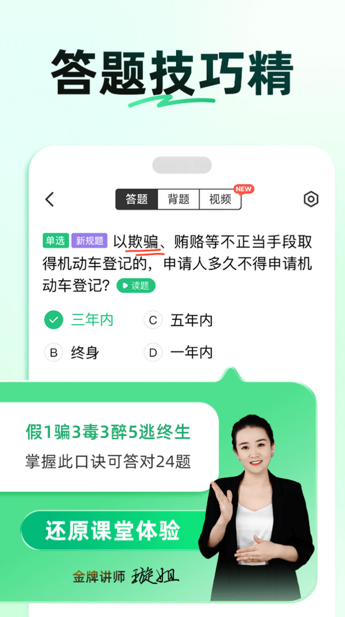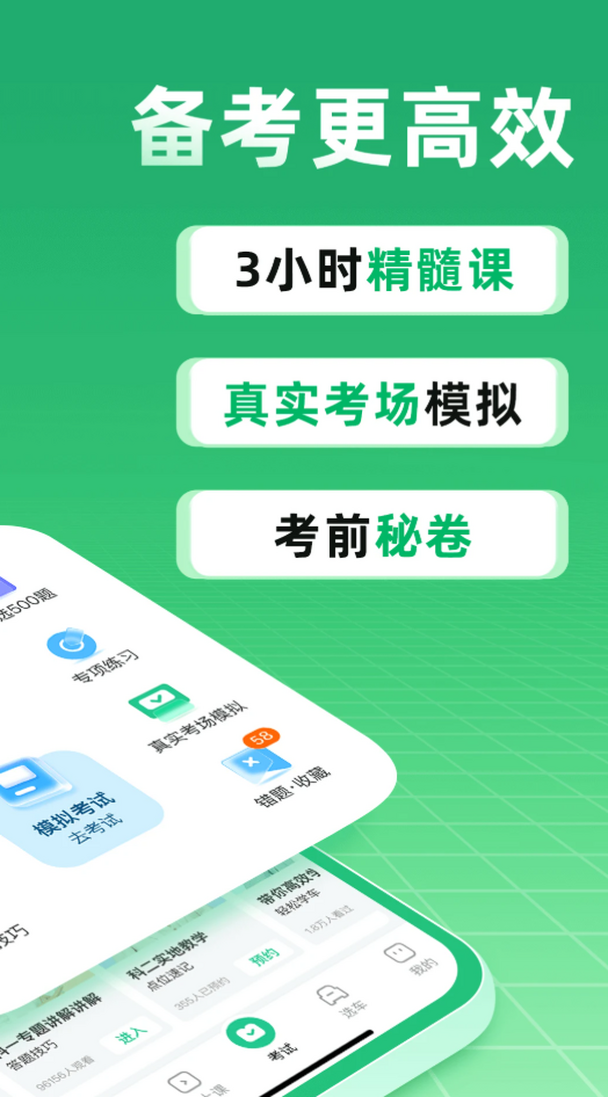 ●学车视频:独家内部制作、高清视频,减少练车恐惧。