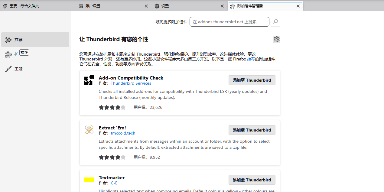 thunderbird 是一款免费开源的电子邮件、新闻订阅、即时通信、日历客户端,配置简单,定制自由。thunderbird的核心功能是帮助用户高效地管理电子邮件,软件支持多种邮件协议,包括imap、pop3等,使得用户可以轻松连接到各种邮件服务器,无论是个人邮箱还是企业邮箱,都能实现无缝对接。同时,thunderbird还提供了强大的邮件过滤和归档功能,用户可以根据自己的需求,设置不同的邮件规则,自动将邮件分类、标记或移动到指定文件夹,大大提高了邮件处理的效率。除了基本的邮件管理功能外,thunderbird还具备出色的安全性。它采用了先进的加密技术,支持s/mime和pgp加密标准,确保用户的邮件在传输过程中不被窃取或篡改,且通过智能算法和黑名单机制,有效拦截恶意邮件,保护用户的隐私和财产安全。