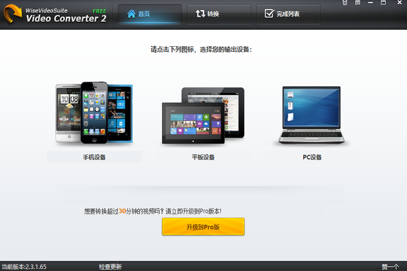 wise video converter 可以为所有品牌的手机、平板电脑和 pc 转换任何格式的视频。您只需要将源视频拖放到相应的设备图标上即可。