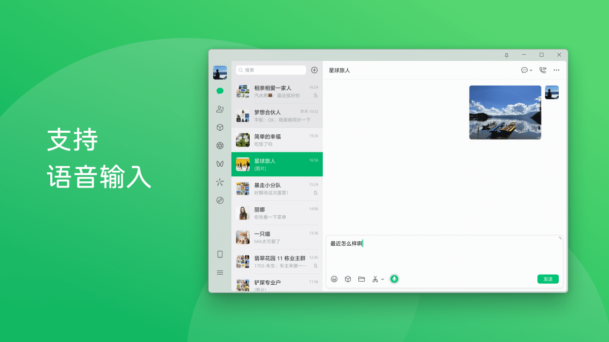 微信,超过10亿人使用,能够通过网络给好友发送文字消息、表情和图片,还可以传送文件,与朋友视频聊天,让你的沟通更方便。并提供有多种语言界面。微信电脑版是腾讯官方推出的一款全民聊天工具,英文名wechat。一款跨平台的通讯工具,支持单人、多人参与。微信电脑版和微信网页版相似,但使用起来更加方便。微信pc版界面非常的简洁,可用作即时聊天和文件分享,整个界面无广告,玩游戏聊天两不误!
