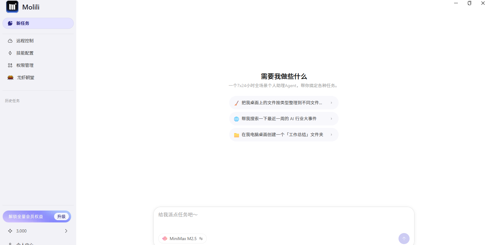 molili 安装在你的电脑本地运行,直接操作你真实的文件和应用,真正能干活的助理。