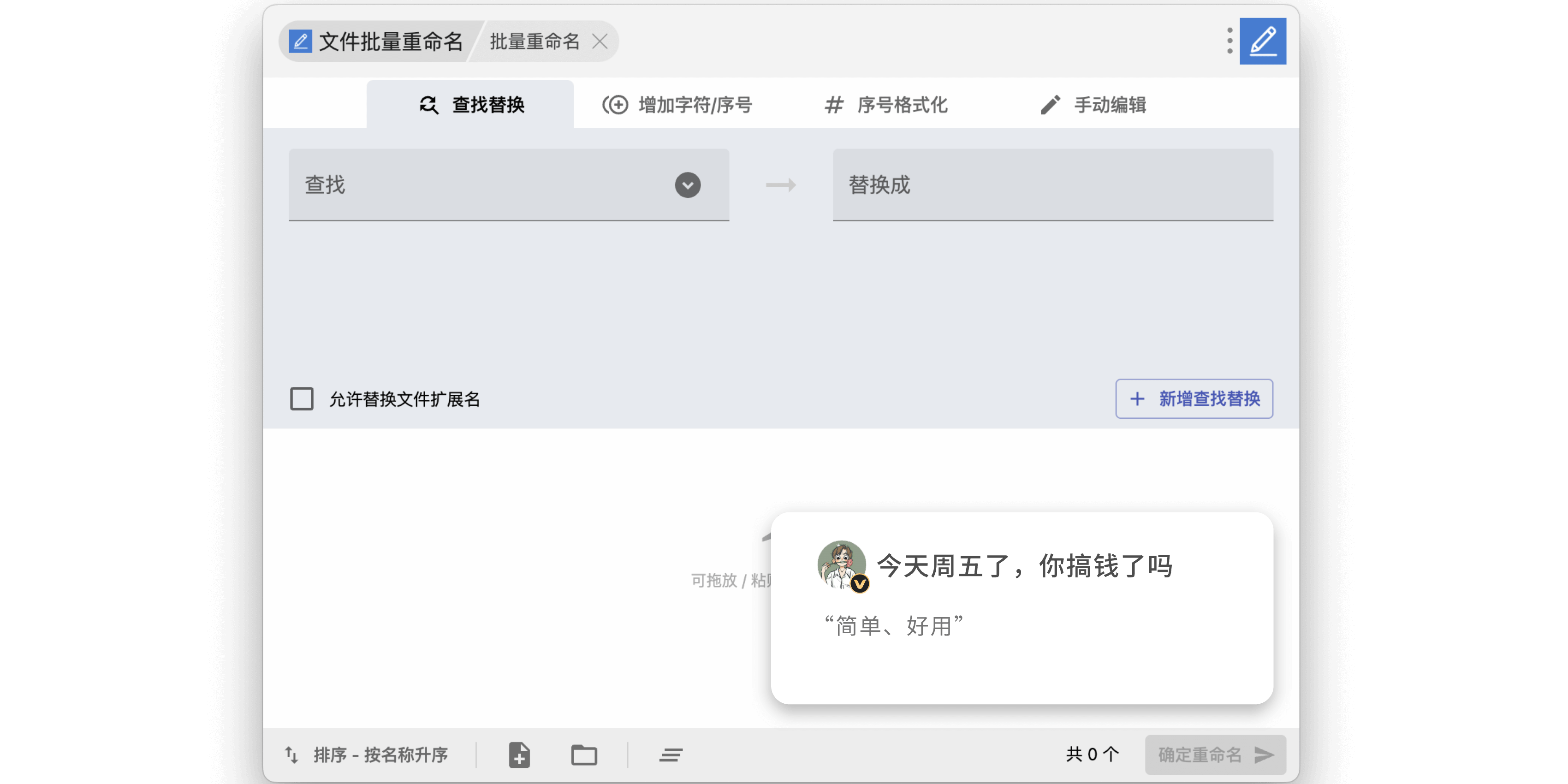 告别手动重命名的枯燥,一键整理你的文件,让文件管理变得井井有条。