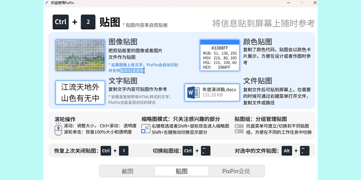 3、贴到屏幕:将图像、文本、颜色和文件像便签一样贴到屏幕上,随时提供即时参考,激发您的创造力。