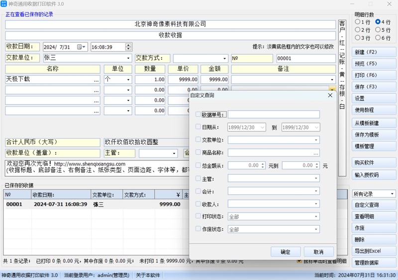 神奇通用收据打印软件