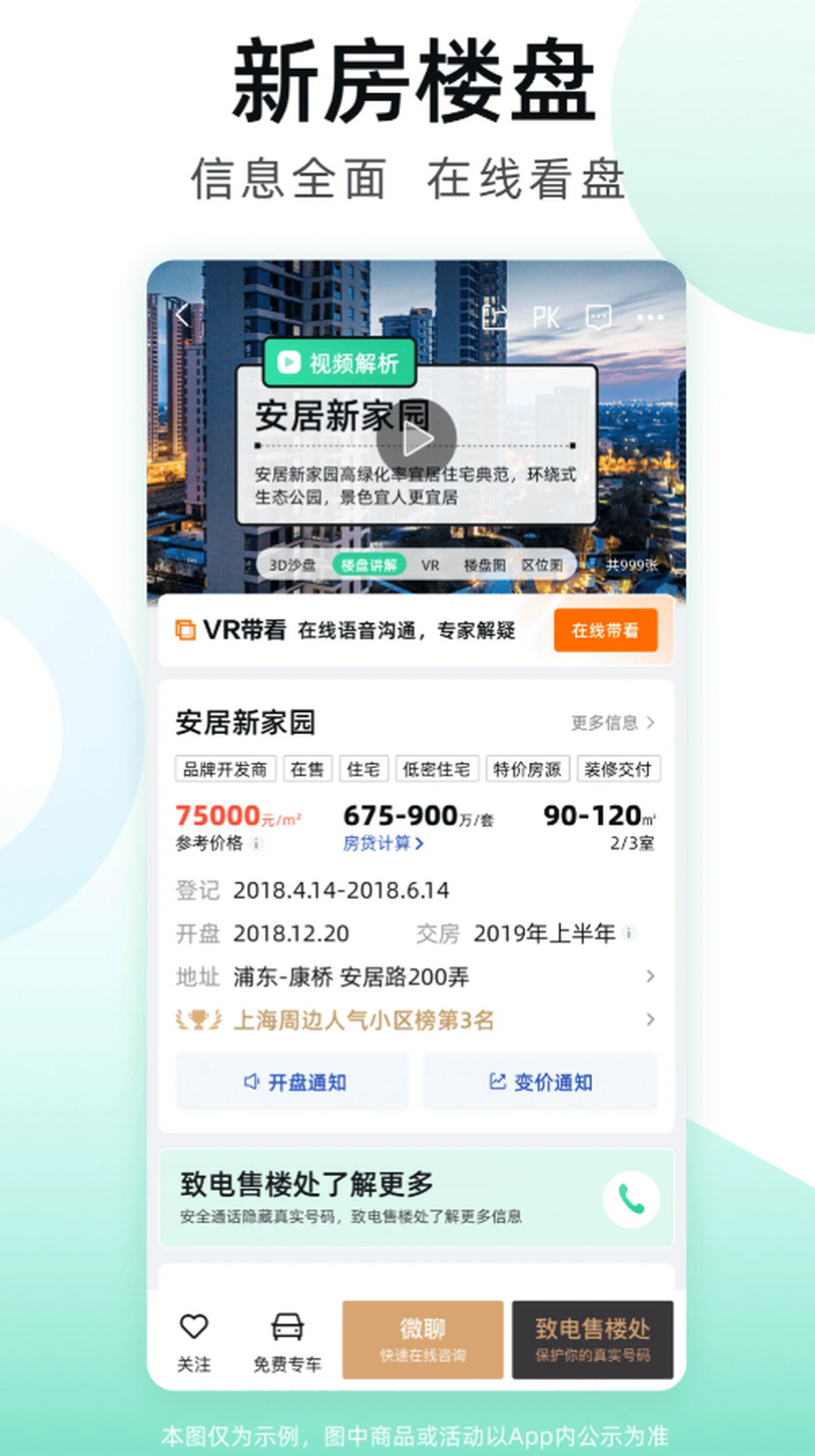 1、新房搜索:浏览各区域新房楼盘信息,获取户型、价格、配套等基础资料。