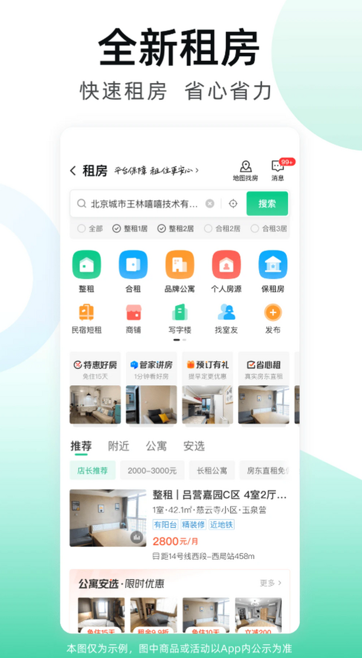 3、租房筛选:支持整租、合租、短租等找房方式,适合不同居住需求。