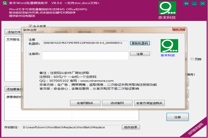 9.点击“注册”,可以获取正版使用权,获取更多功能。联系客服付款后,发送注册界面中的机器码给客服,获取注册码,填入注册码,确定后即可注册