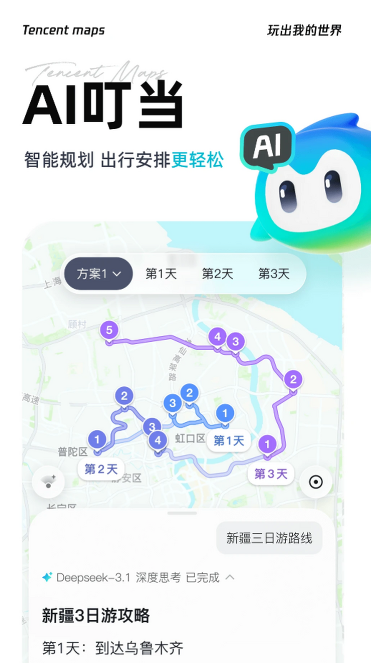 -提供包含驾车、打车、公交、步行、骑行等出行方式的智能规划方案和精准智能导航。综合运用大数据、算力和算法能力,提升用户的出行效率。
