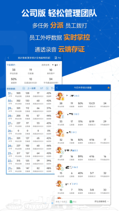公司版:随时用手机掌控您的团队,轻松统计销售和客服电话外呼情况,有效管理和跟踪客户。