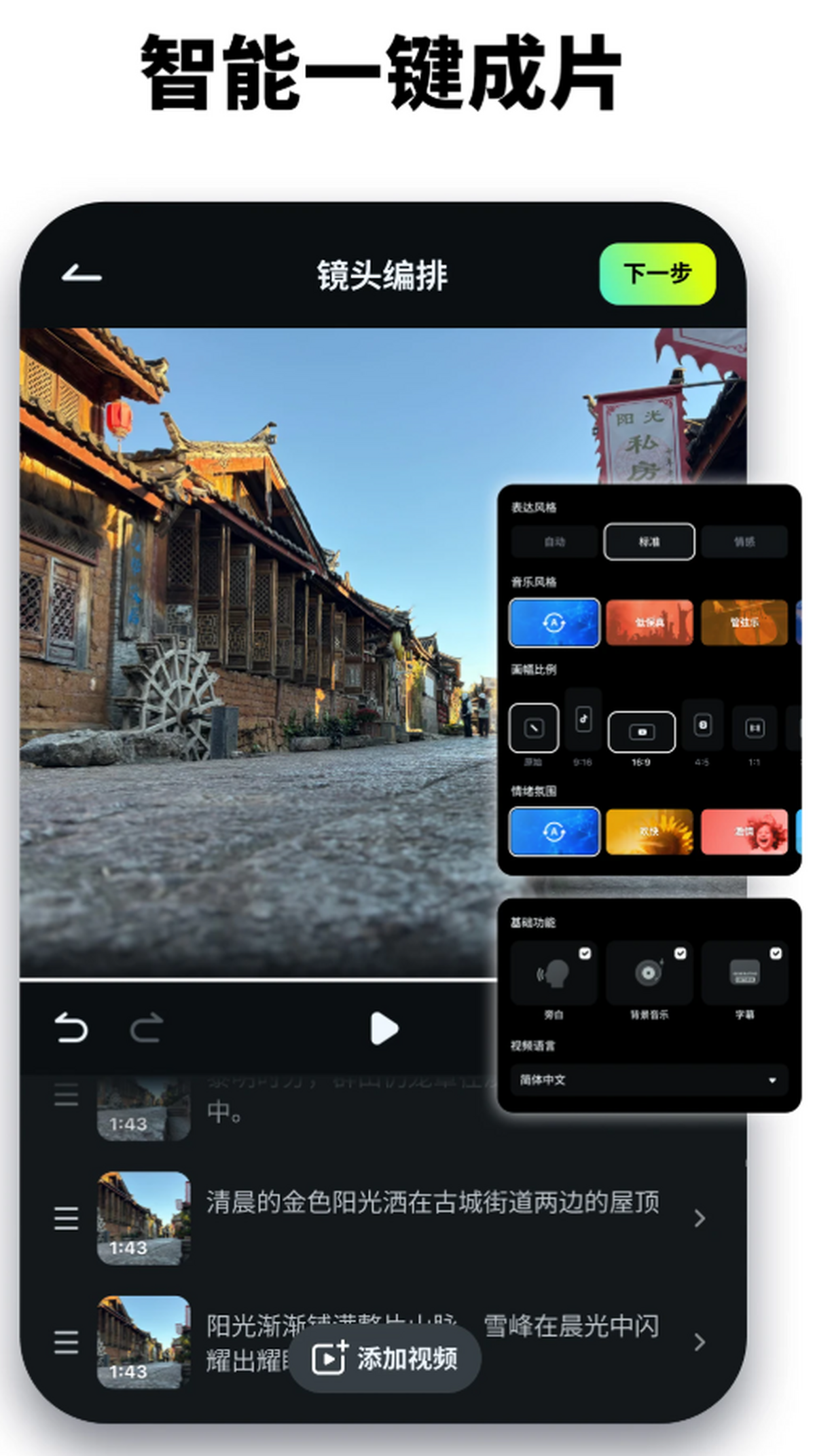 3、覆盖从灵感捕捉到成片导出的全流程创作,满足5亿+移动端视频创作者需求。