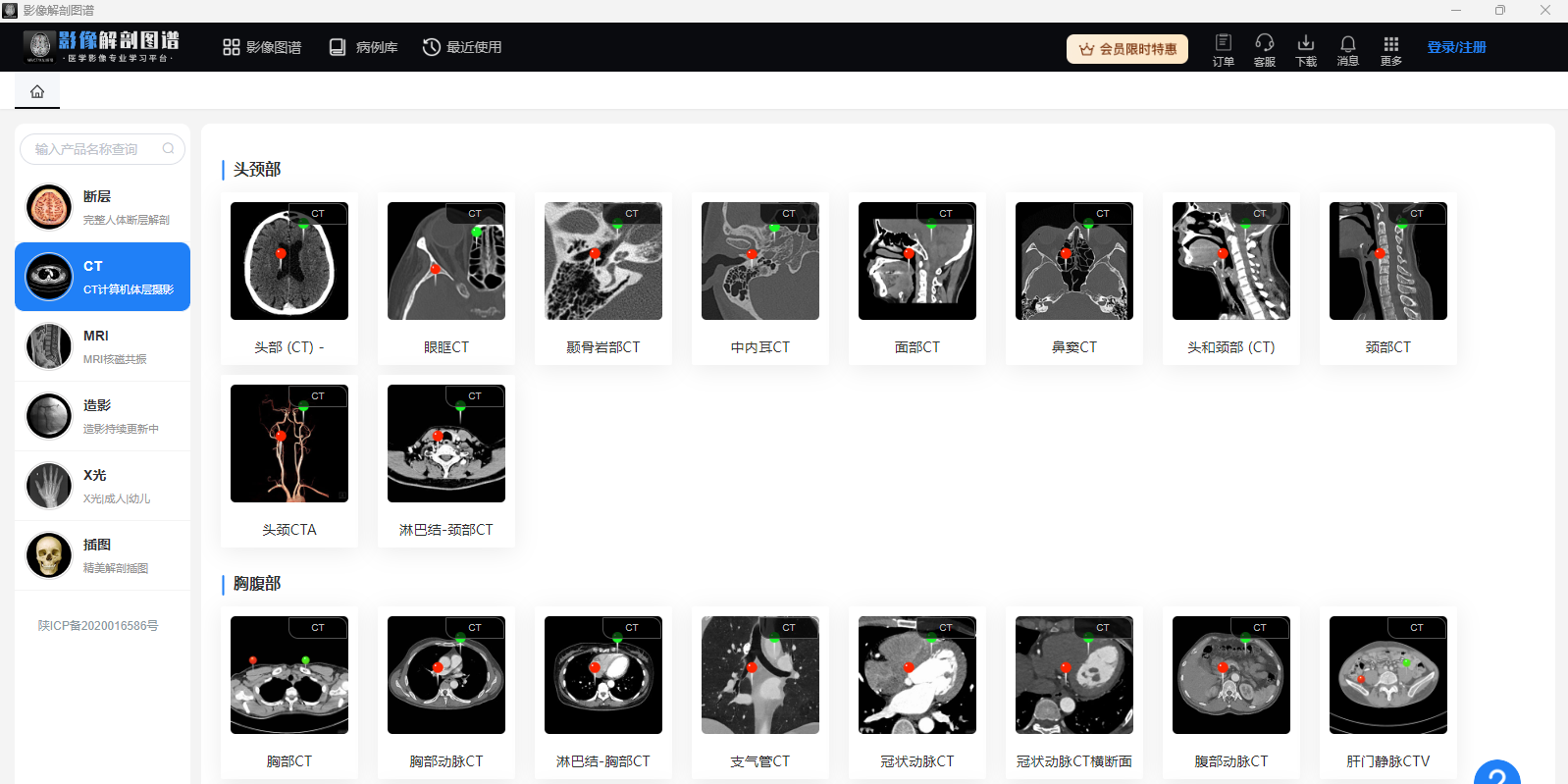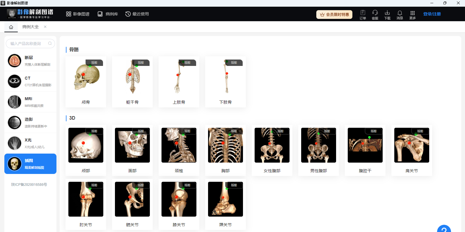 影像解剖图谱32位影像解剖图谱是一款专业的人体影像解剖图谱学习工具,软件功能强大,数据丰富,内容专业,适用于医疗和相关专业从业者,是一款医学影像解剖学习首选软件!更是影像放射科医生必备软件,让医生获得最直观的图片学习宝库,可直观全面地学习人体解剖学知识。医学影像,医学插图,断层解剖,经典、权威病例,常见病、多发病、罕见病等,应有尽有,轻松get到各类影像知识。