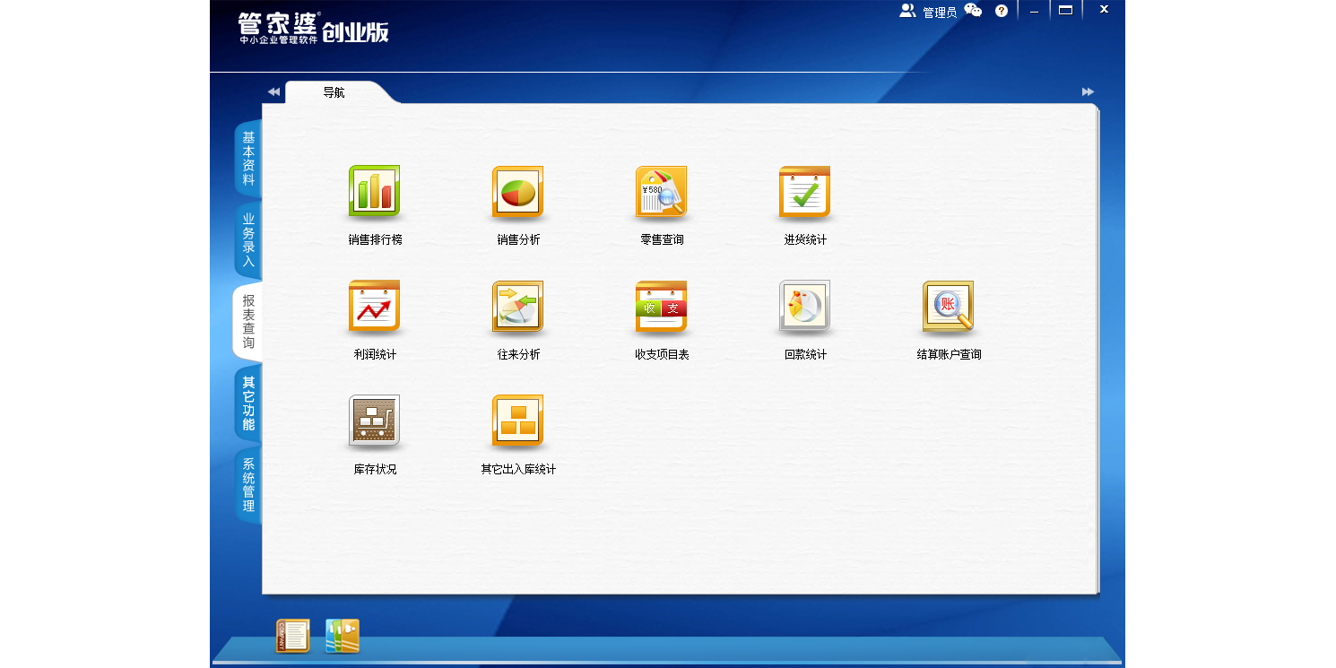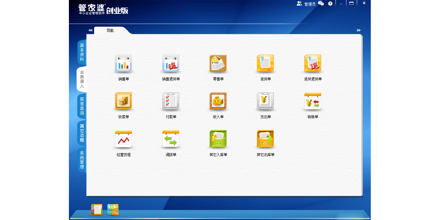 管家婆创业版是一款专业的面对个体商户及小微企业的入门级进销存管理软件,该软件终生免费。软件产品自带数据库,可以轻松上手。只需要将企业发生的业务单据录入系统,就能够实时掌握企业的资金、库存、往来、收支、利润等营业情况。