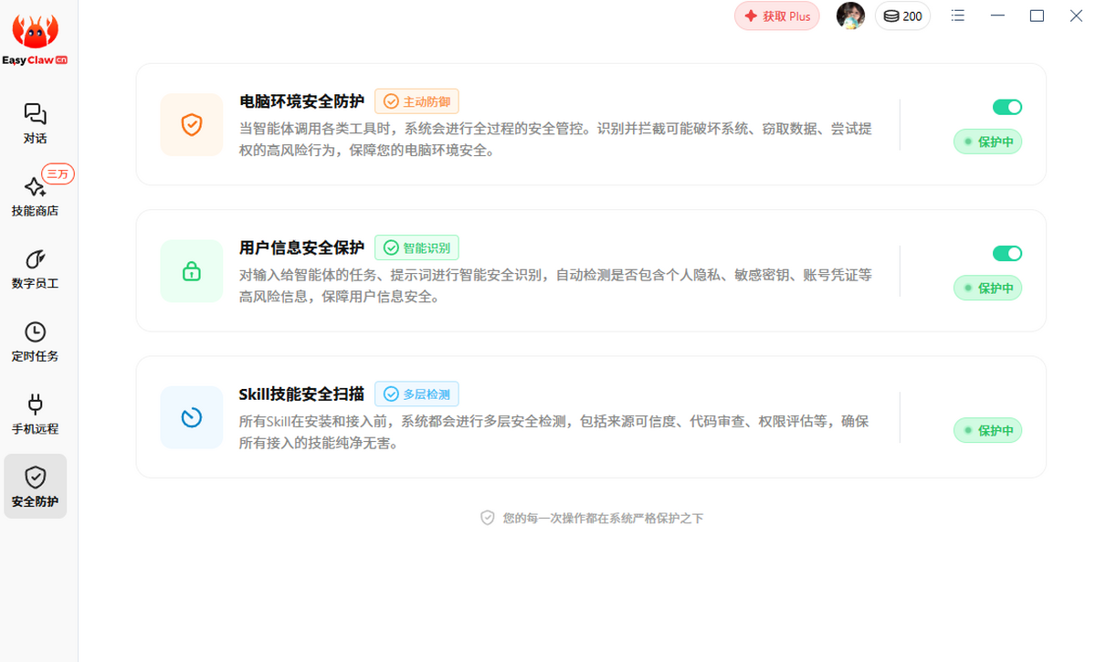 easyclaw国内版将数据安全与用户隐私放在首位,采用多重安全机制确保用户数据安全: