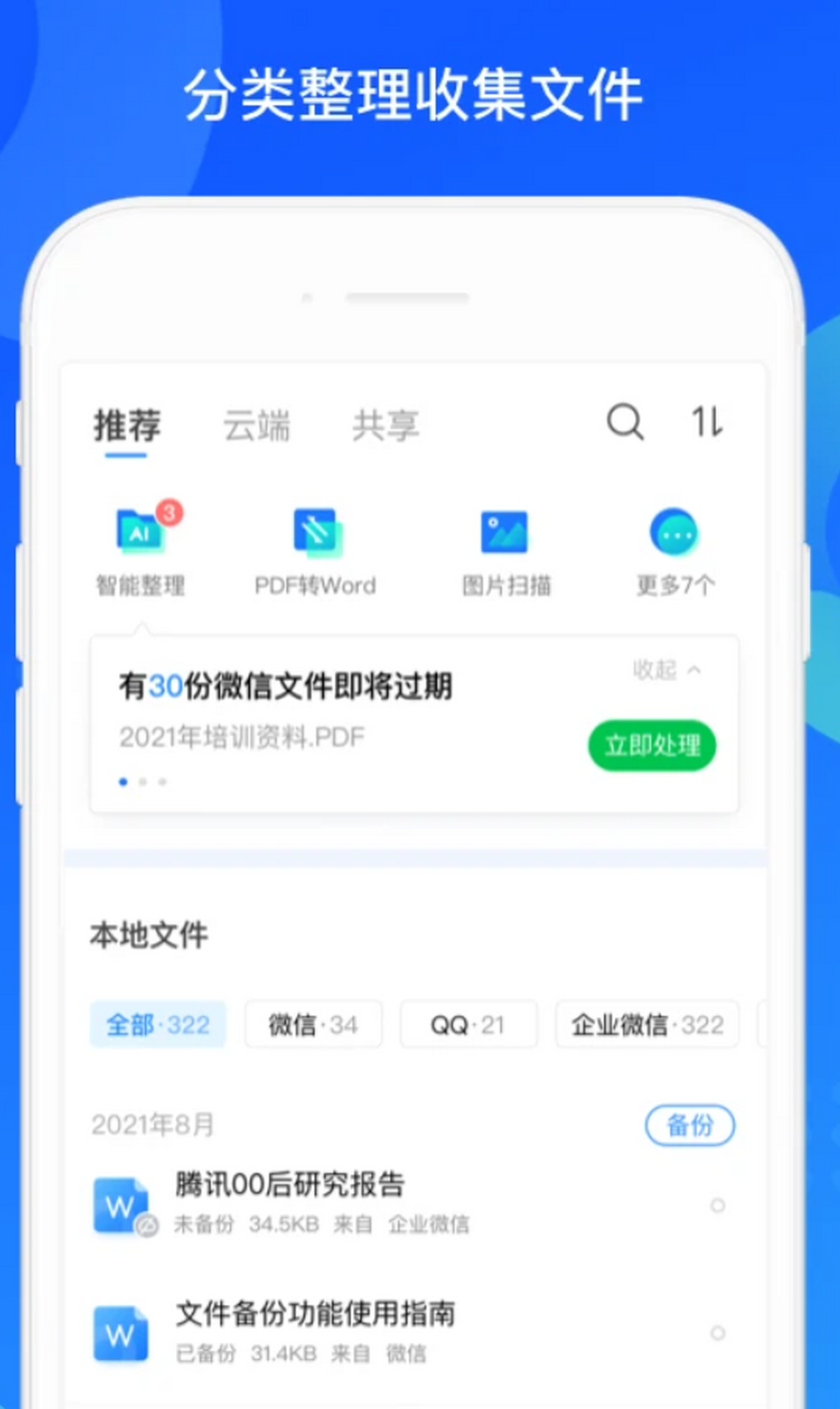 ●文件管理:微信qq聊天文件备份,智能分类快速查找