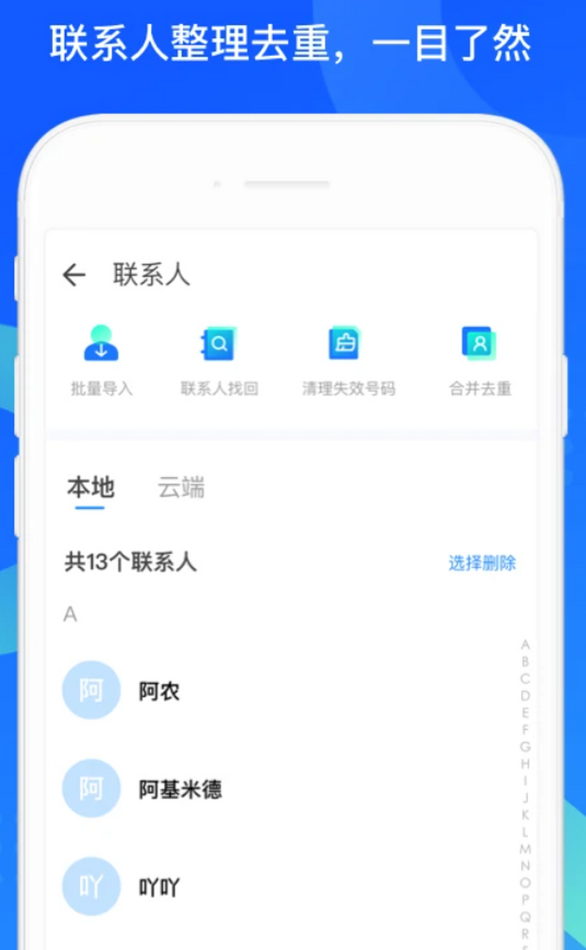 ●智能检测:自动检测已失效号码和重复联系人,智能清理合并